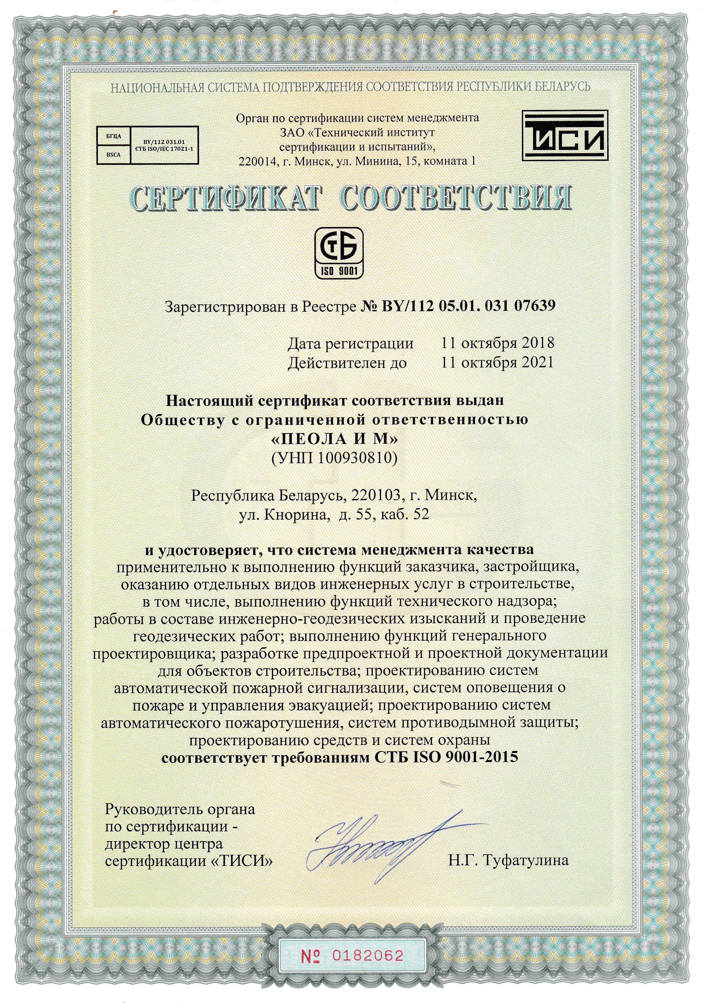 ООО «ПЕОЛА И М» Республика Беларусь, 220049 Юр.адрес: г. Минск, ул. Кнорина 55, каб.52 тел./факс: +375 17 355 34 93, 367 34 93